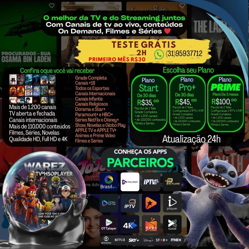 📺 Canais, filmes, séries, esportes, Netflix, Prime Video, Disney+, HBO e muito mais!
